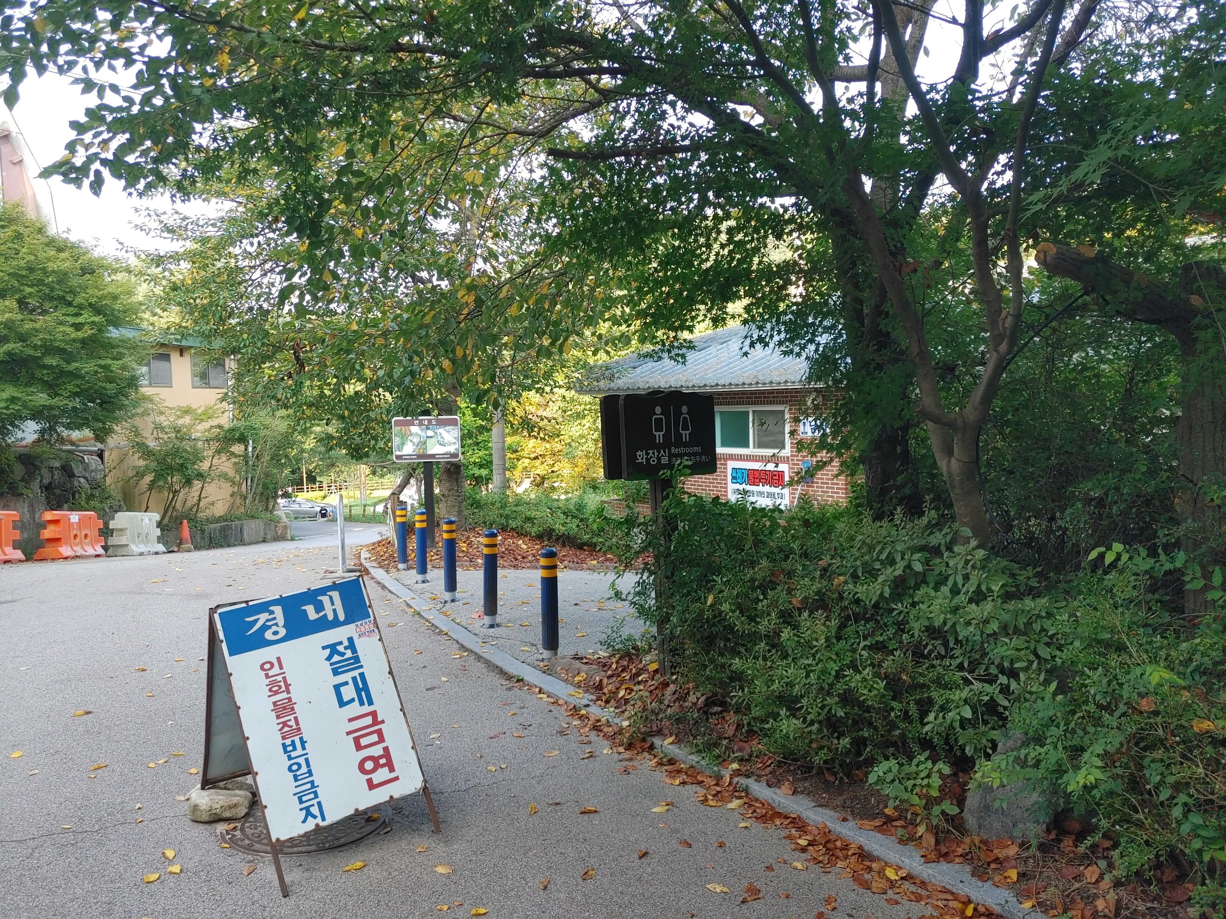 주차장에 주차하고 수덕사 방향으로 오다 보면 첫 번째 화장실이 있습니다