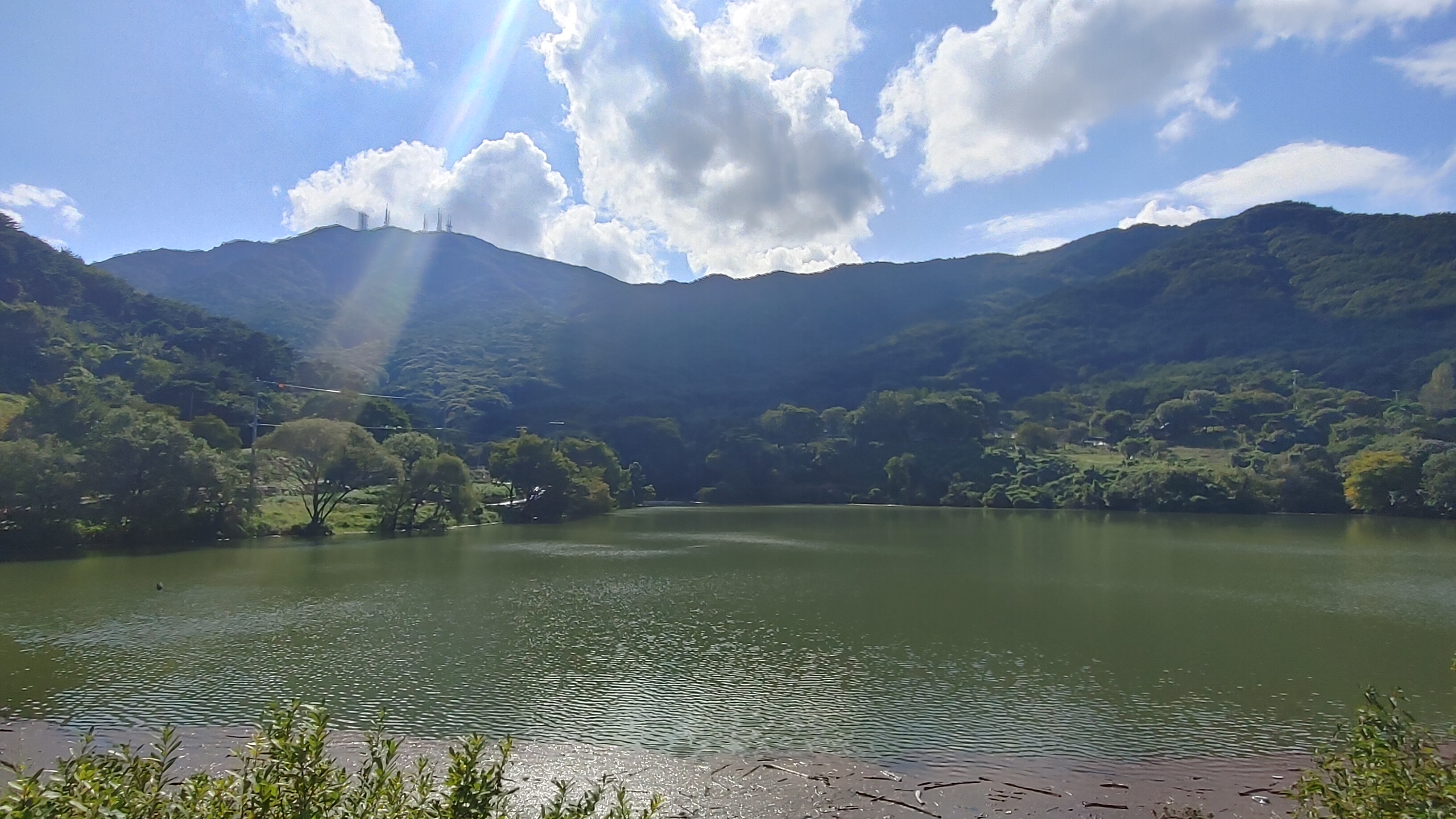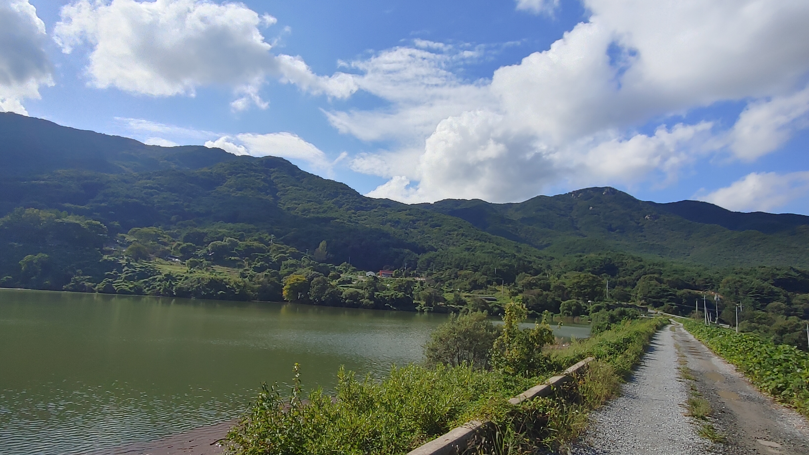 저수지 길을 따라 걷다 뒤돌아 본 모습